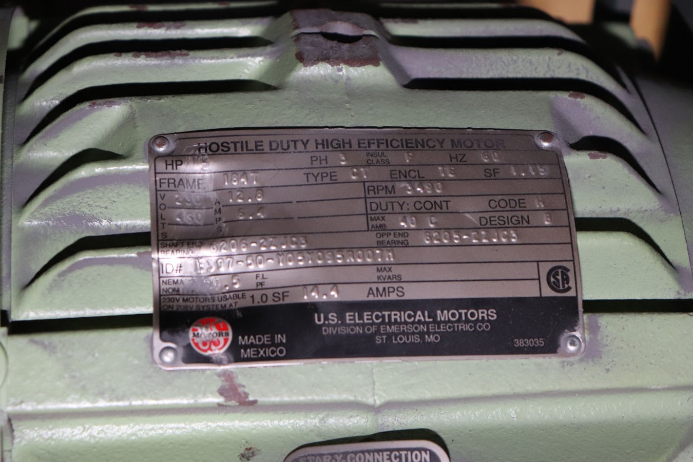 Approx. 5hp ? label missing, 220/440/3ph Wired 220v, 48" Between wheels, 1.25" Arbor,