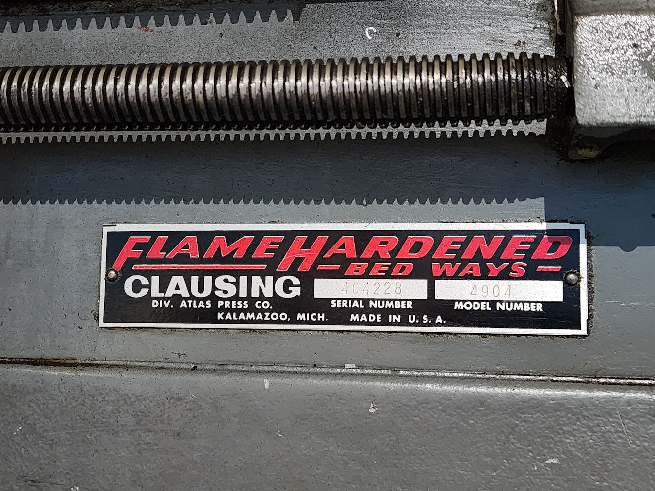 speeds from 18 to 800 rpm, Fwd./Rev, 48 Threading ranges from .0038 to .240, Taper attachment, Built in coolant, Flame