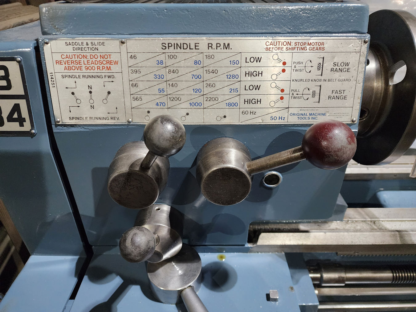 Threading ranges from 4 to 224, Thread dial on carriage, Full