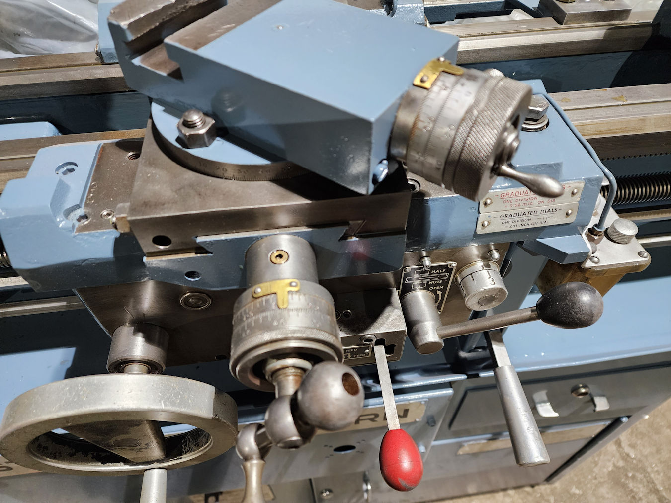 dial on carriage, Engage lever on carriage, 2 Way tool post,