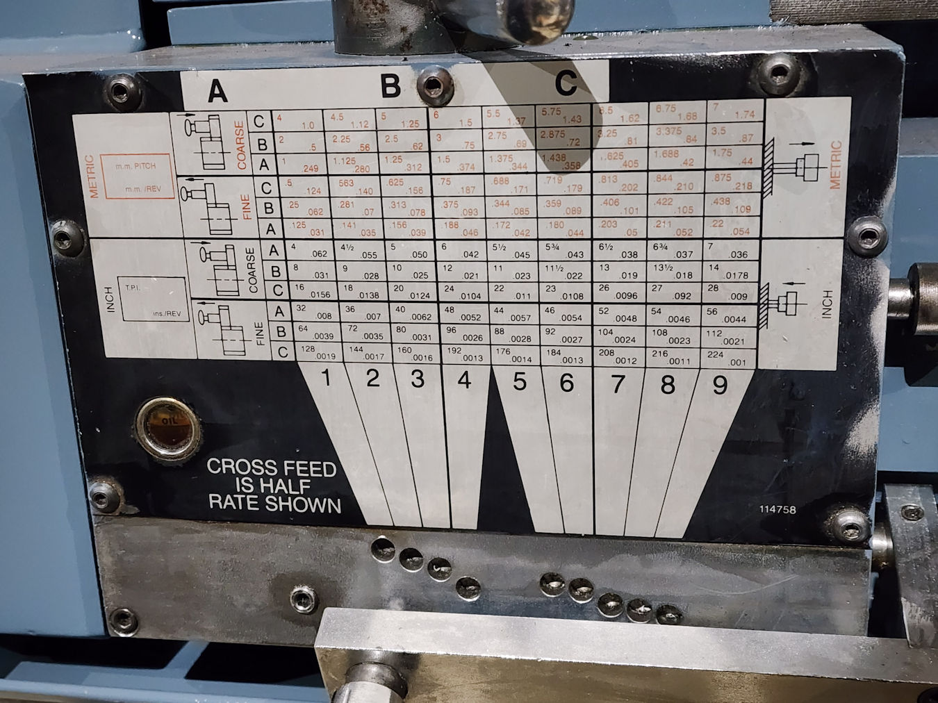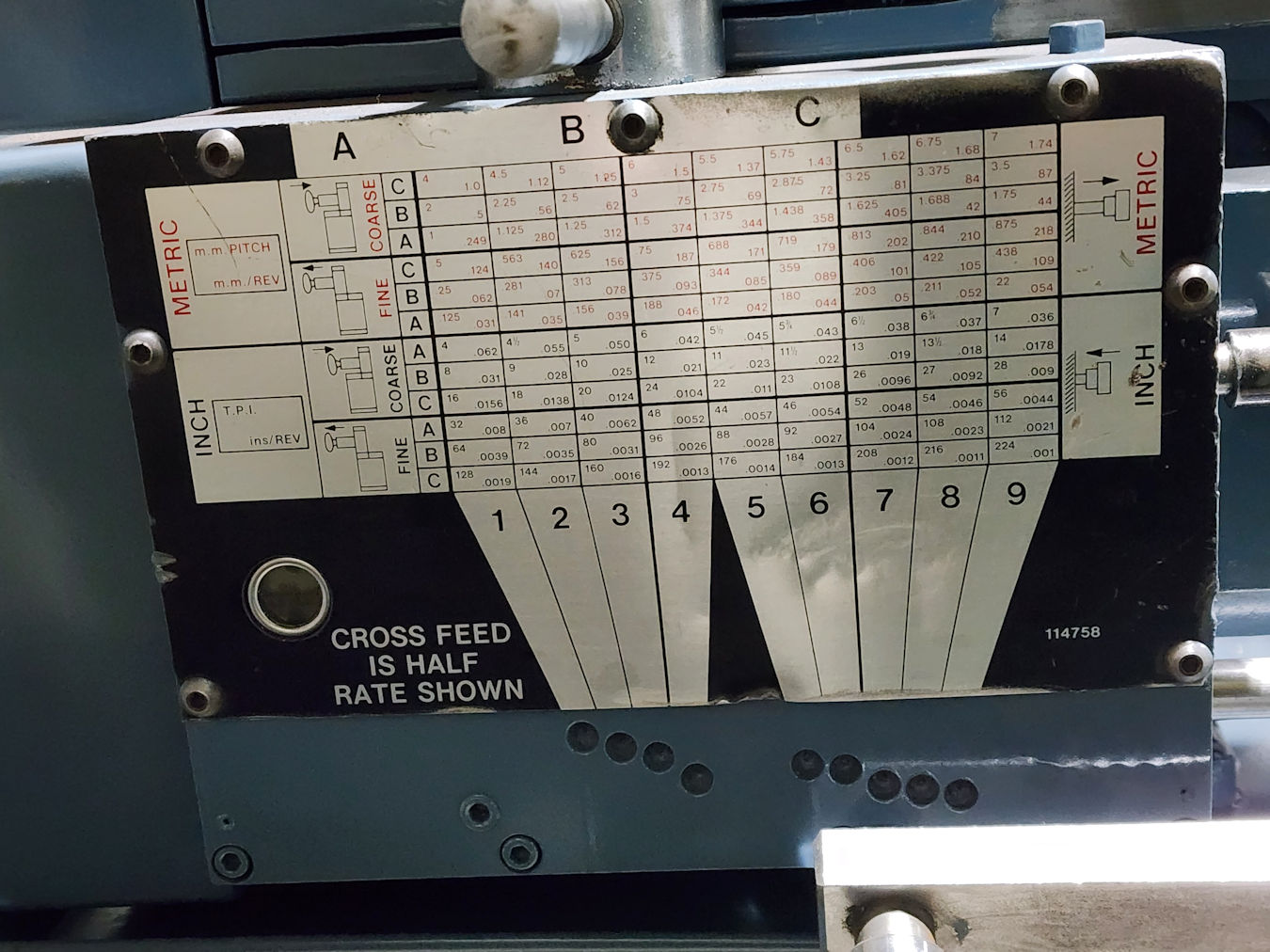 2.033 mm/rev, 72 Metric thread ranges from 0.5 to 112mm, 72 Inch