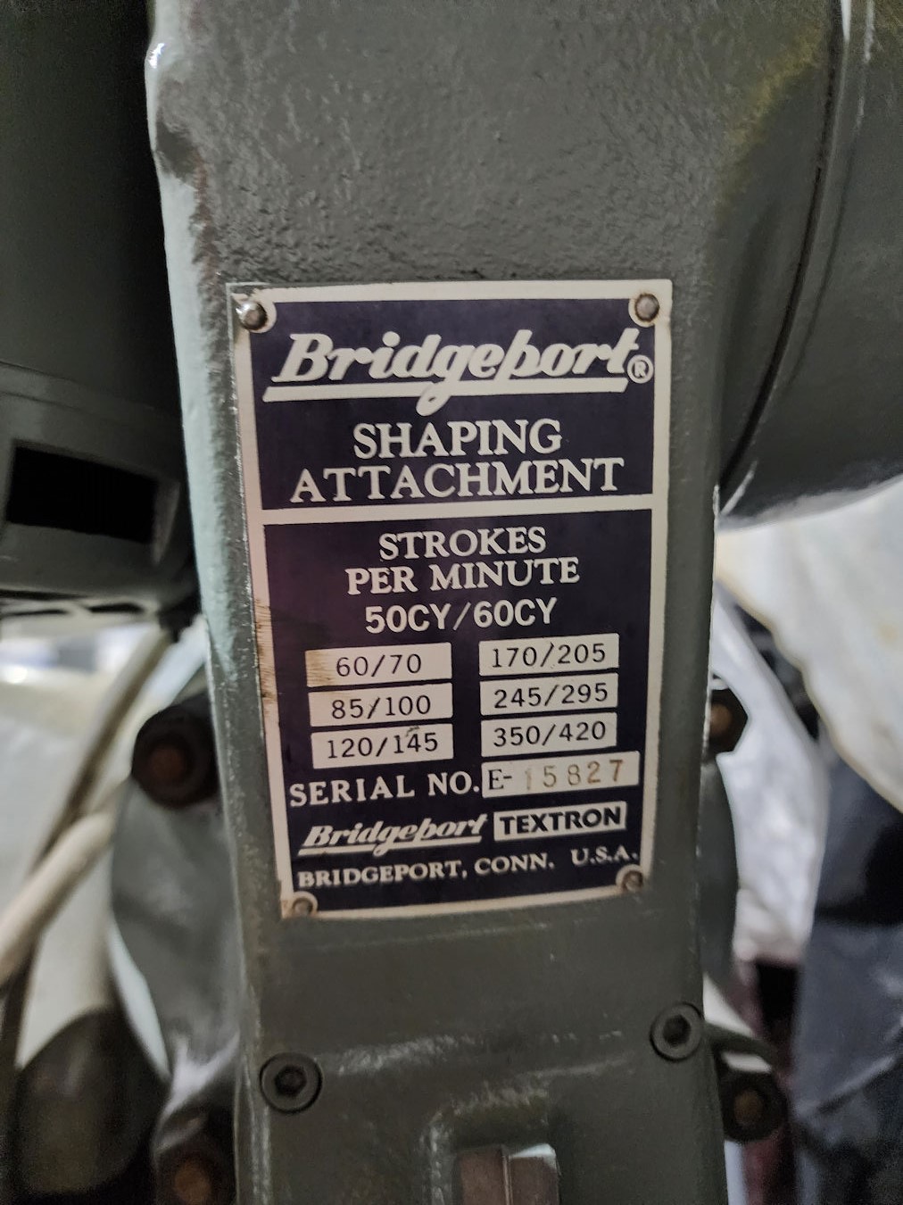 stop, Chromed ways, Bridgeport shaping attachment, One shot