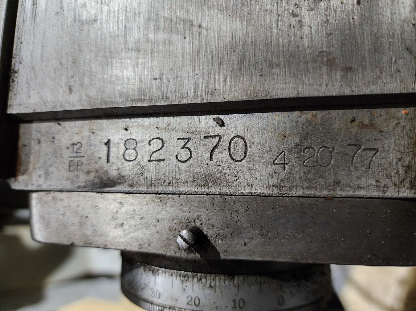 Model 2A, S# 127, 20" x 36" Slotted fixed table, Power down feed, 8 Speed step pulley with 2 speed motor,