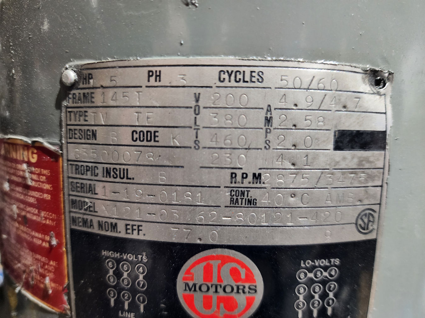 Horizontal drive motor 5hp 220v 3ph, Overall Dim. 5' 3"FB x 5' 7"W x 7' 9"H