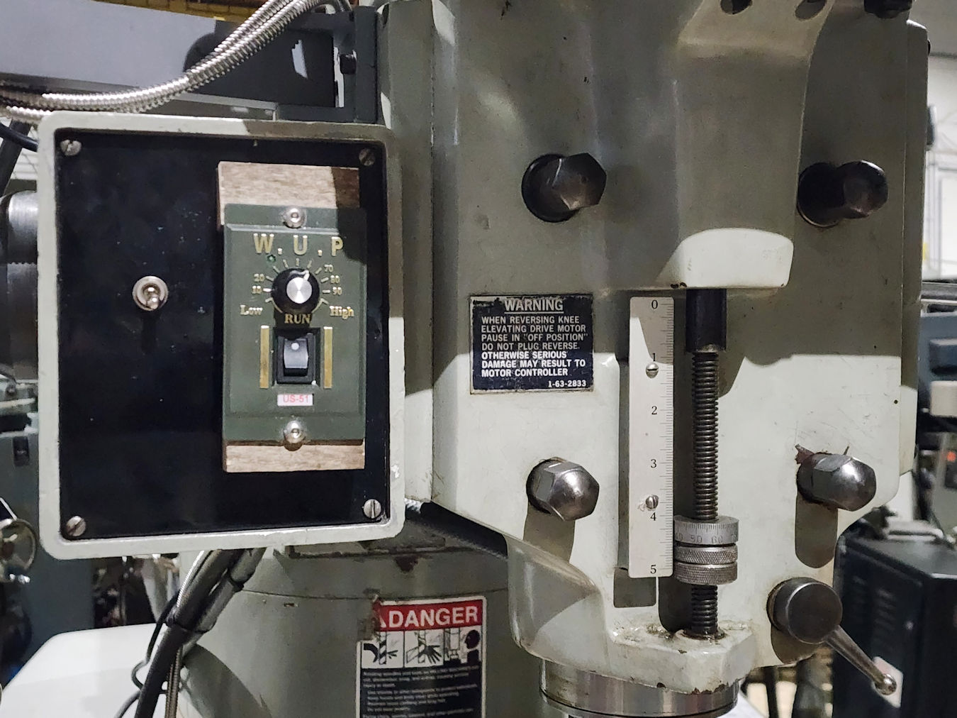 spindle 60 to 4,500 rpm, R-8 Spindle, Acu-Rite X/Y/Z DRO, 5" Depth stop,