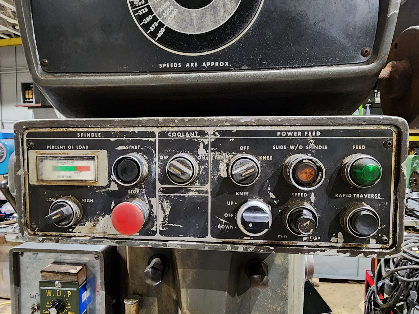 w/ rapid, Power knee, Variable speed spindle, Power down feed,