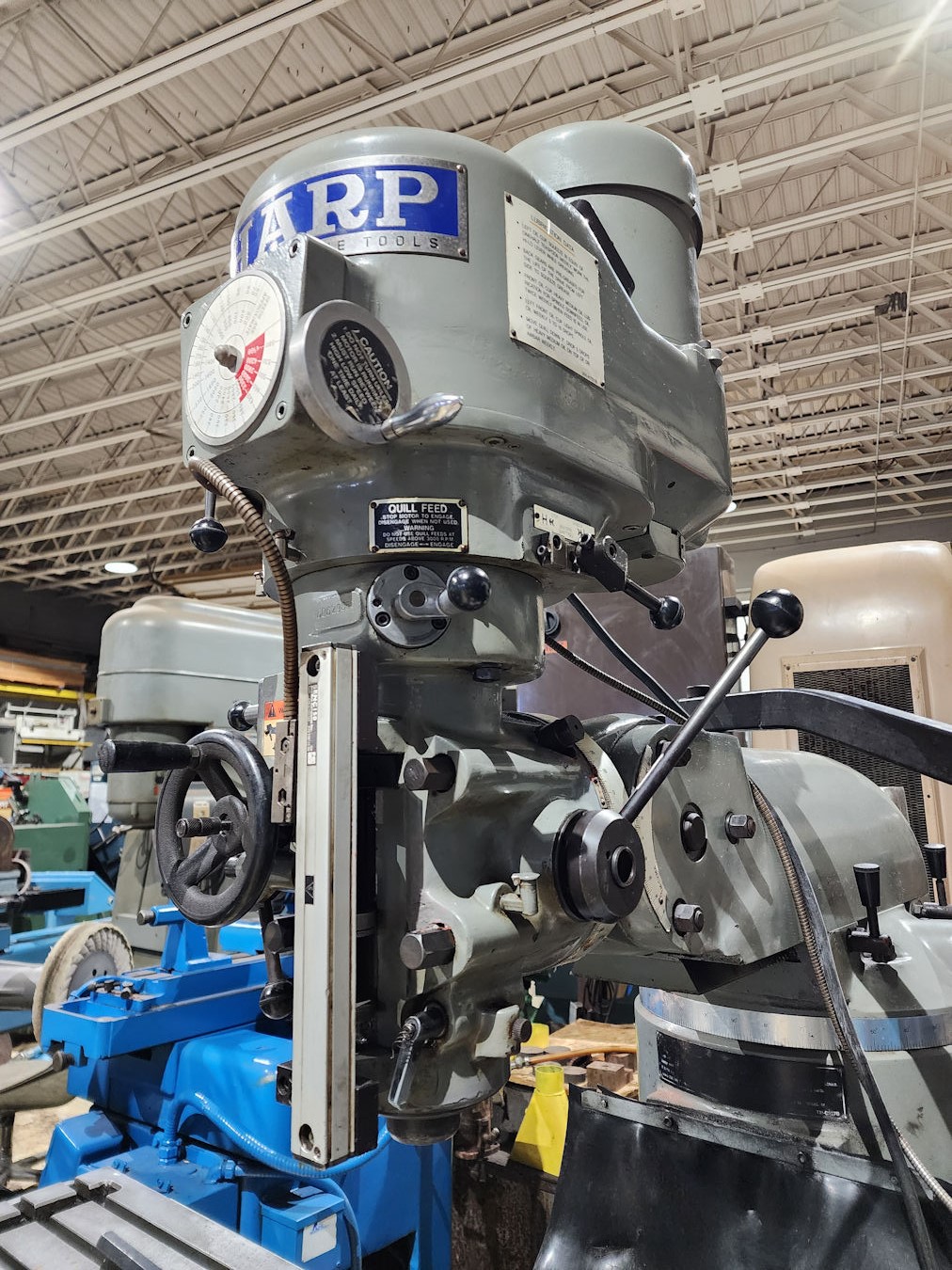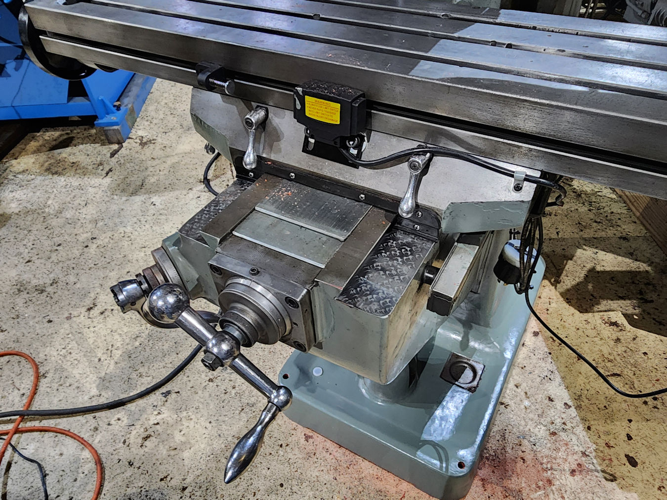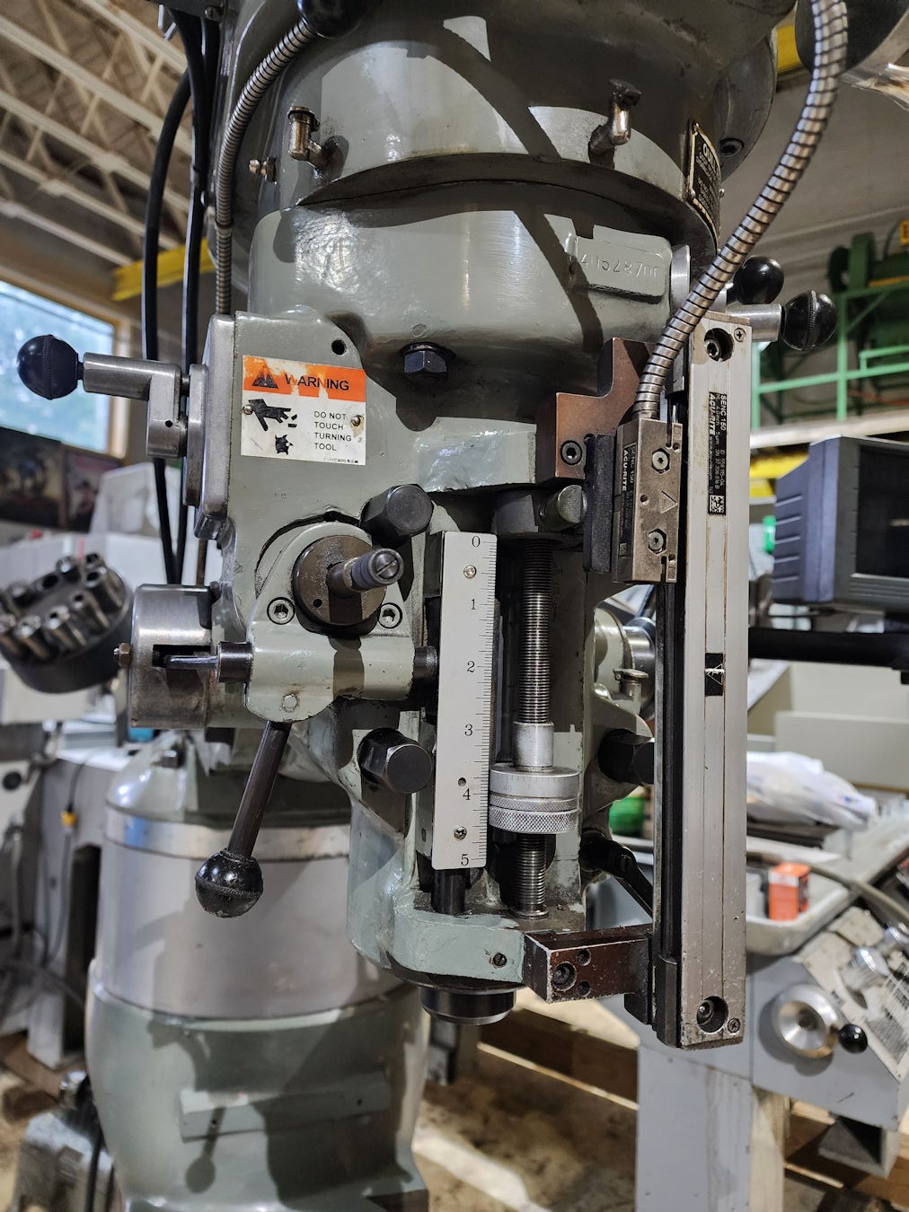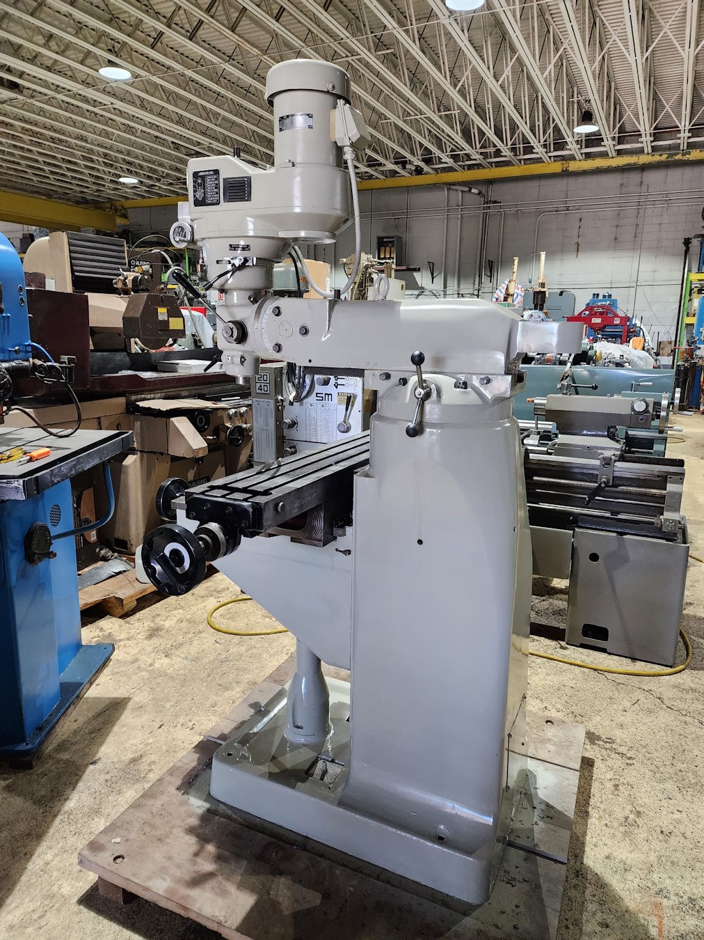 3,000 rpm, R-8 Collet spindle, Acu-Rite X/Y DRO, Power down feed, 5"