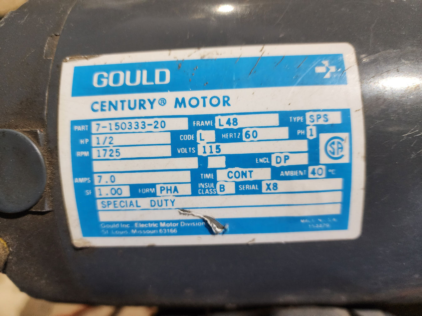 1/10hp, Overall Dim. 45"L x 52"W x 6'H, Est. Wt. 2,500 lbs., Cleaned