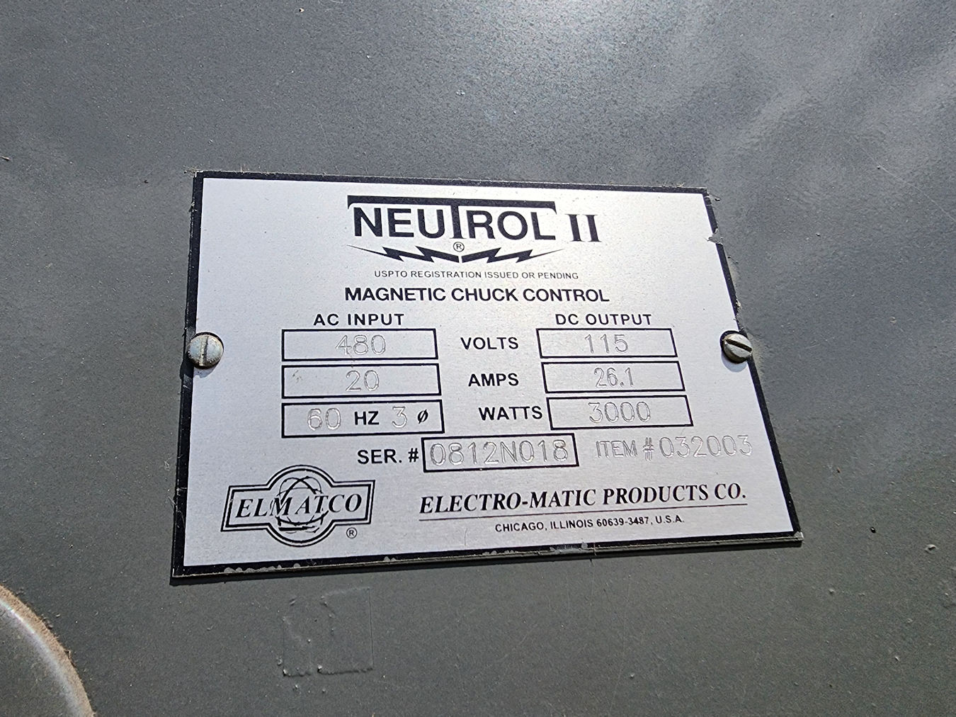 Neutrol II digital chuck control, 20" x 3" Grind wheel, Adjustable work light,