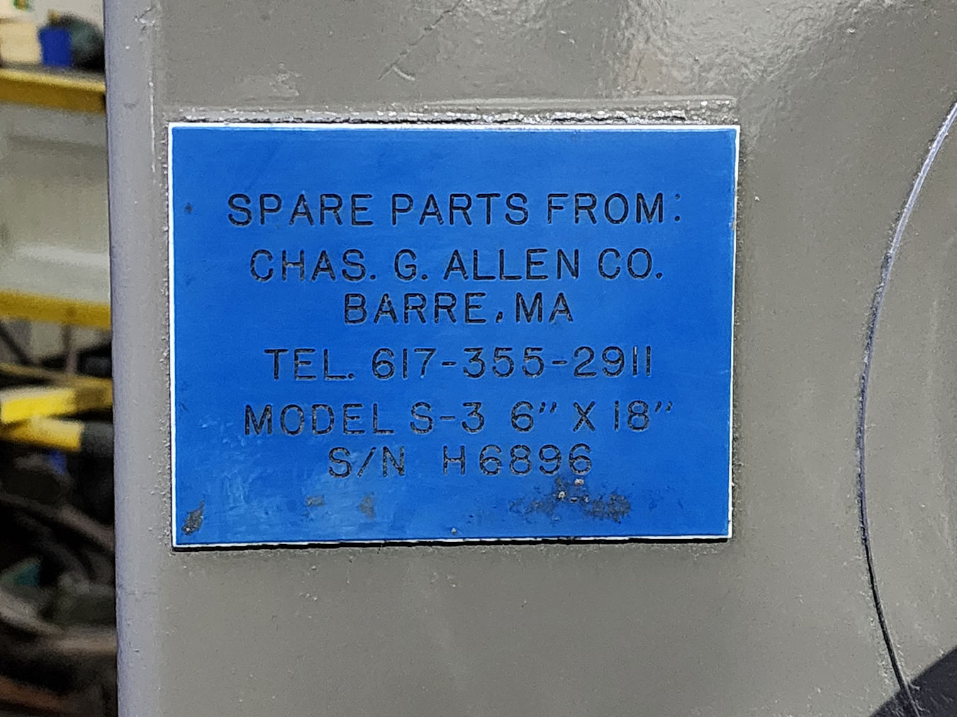 Model S-3, S# H 6896, 6" x 18" Brown & Sharpe Cat. 618-3 magnetic