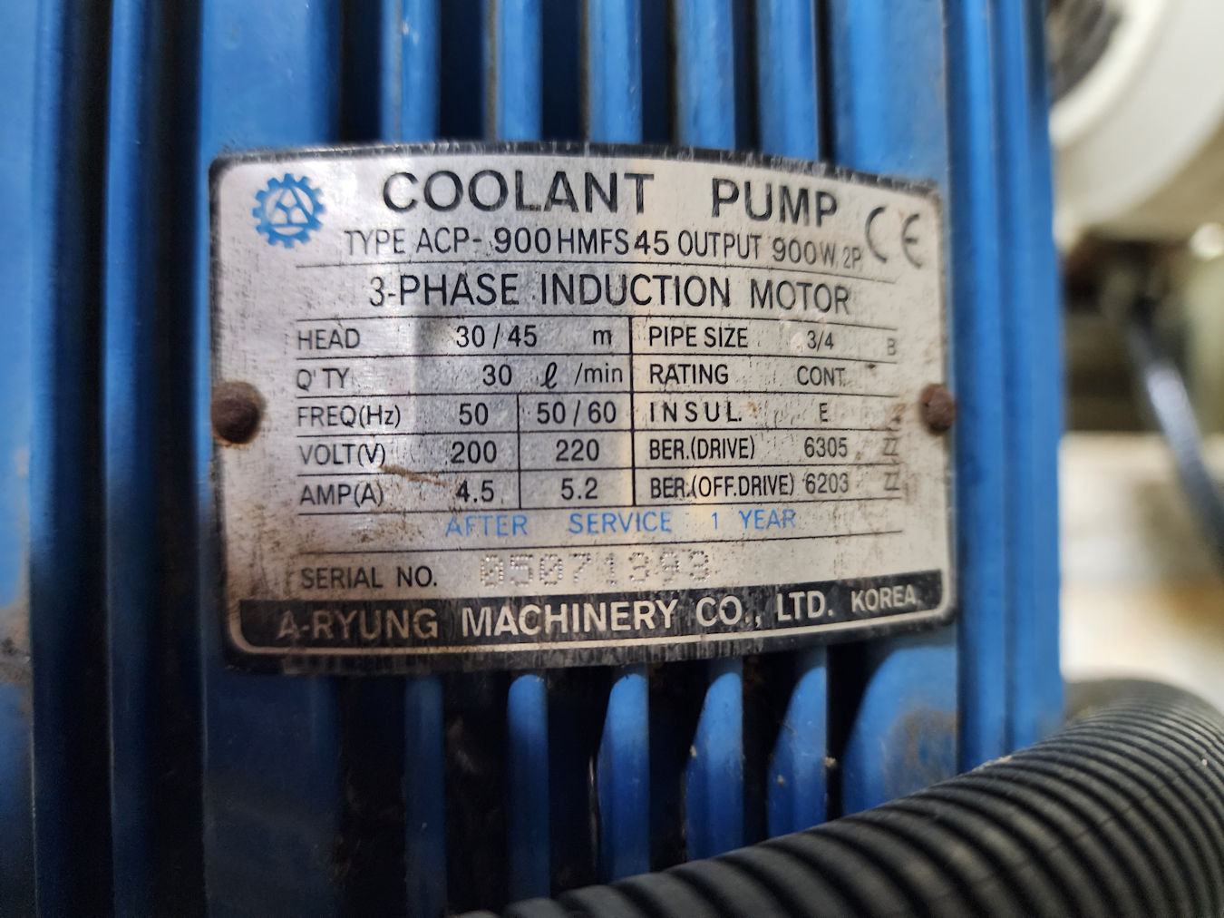 Coolant tank & pump 1/6hp, Hydraulic pump 1hp,