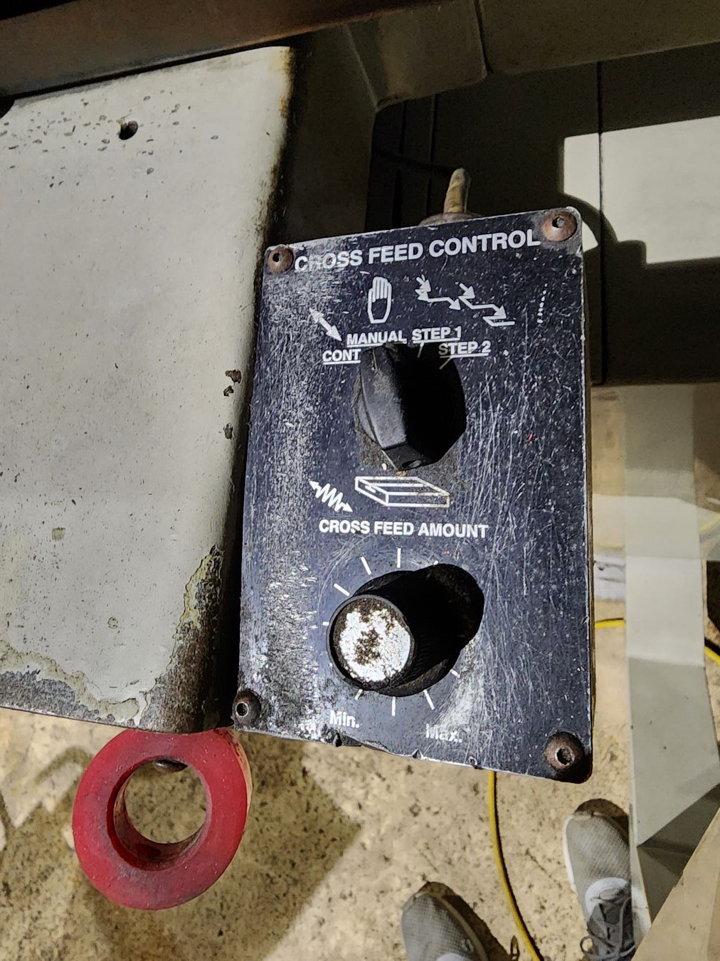 Longitudinal feed rate 1 to 82 FPM, Cross feed (manual) 0.25" per