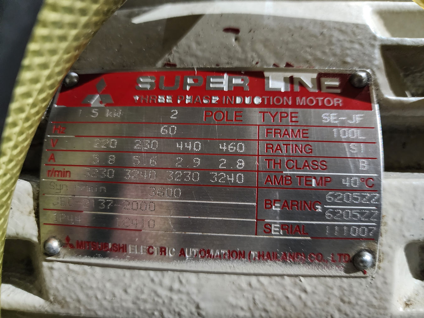 S# 4152, 3hp 3,450 rpm 220v 3ph