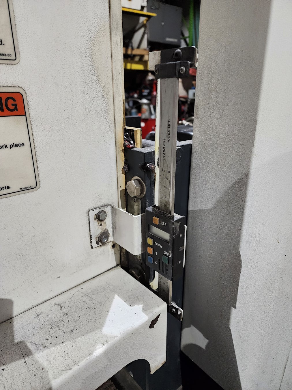 Model BG-8, S# 7650-C, 8"W Belt, Max 9", Table work area 17.5"W x 12"FB, T-Slotted, Trough around