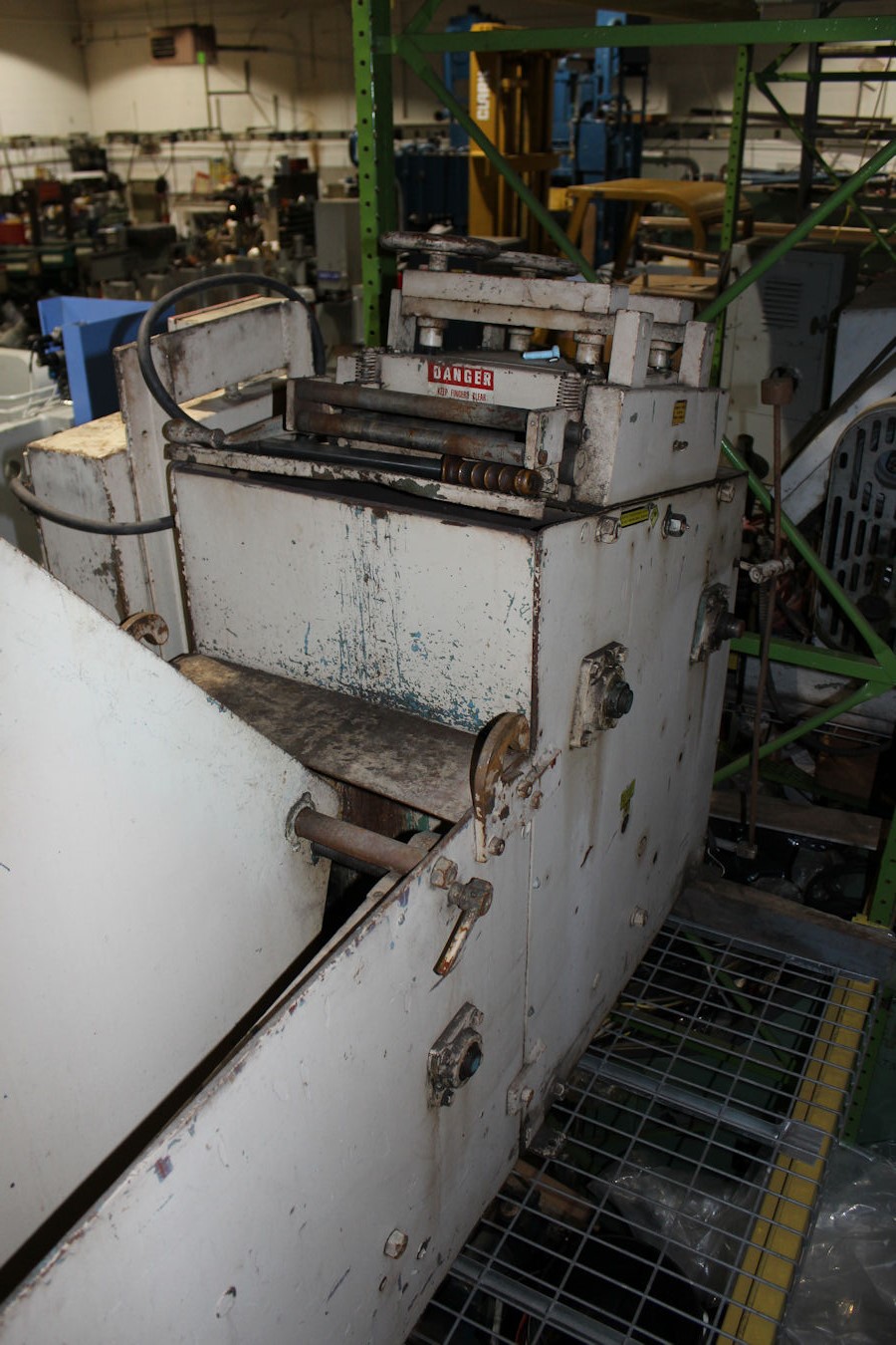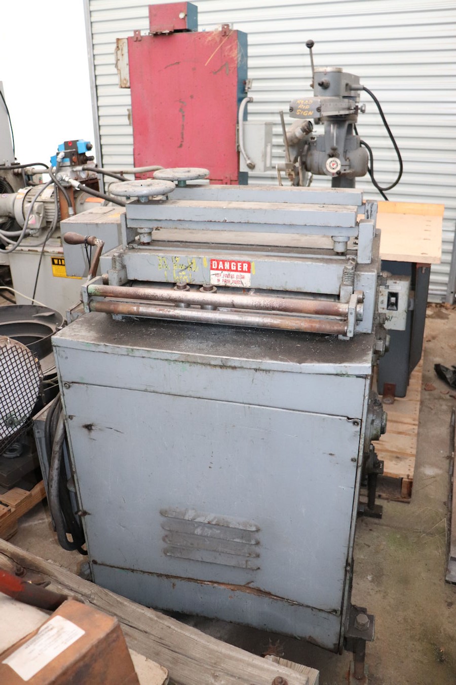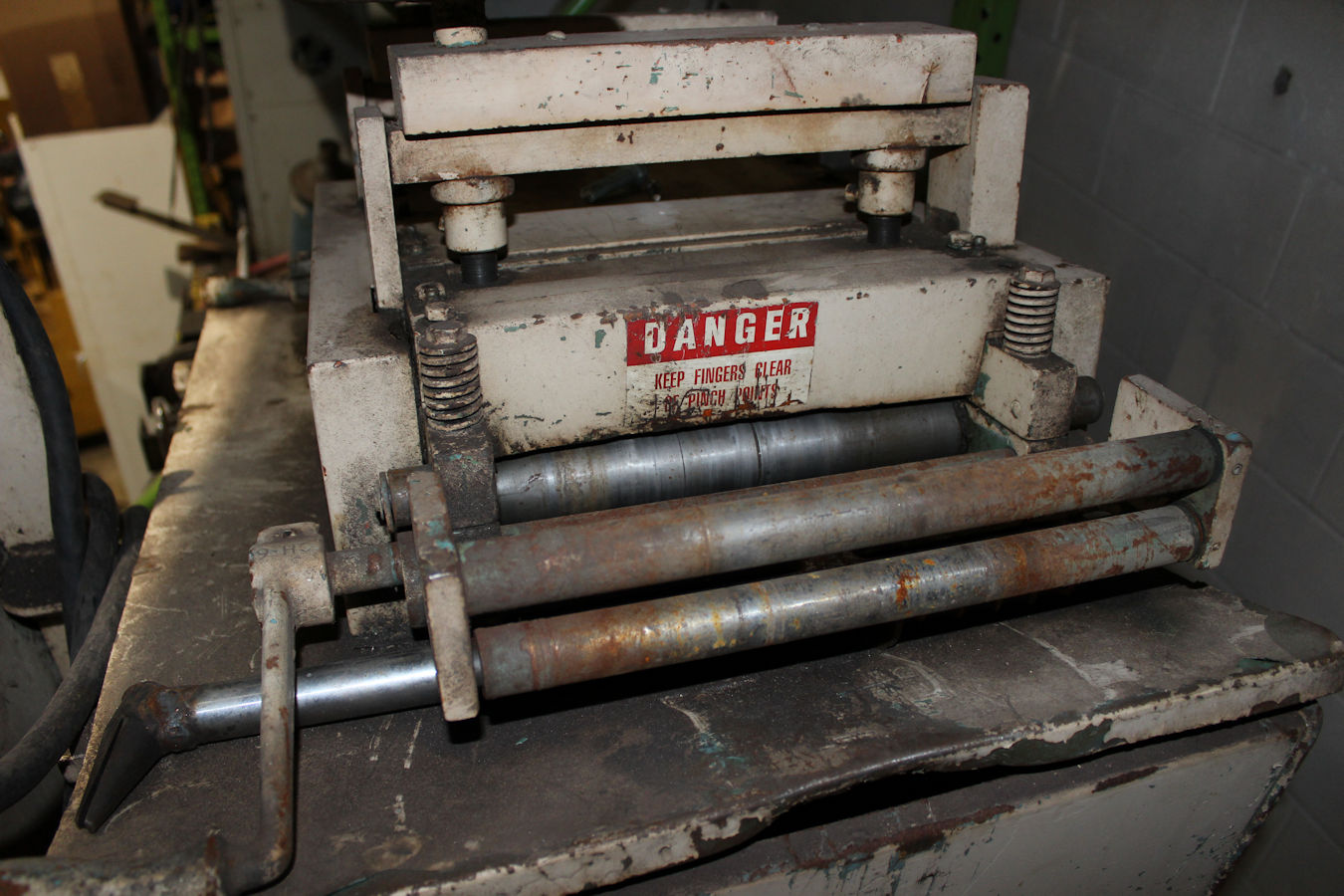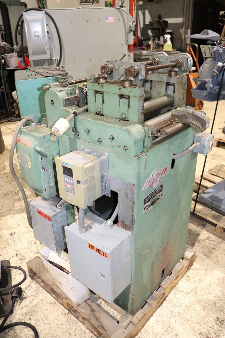 8" x 3.5" Diameter rolls, Approx. 1/8" capacity, Hydraulic powered variable speed