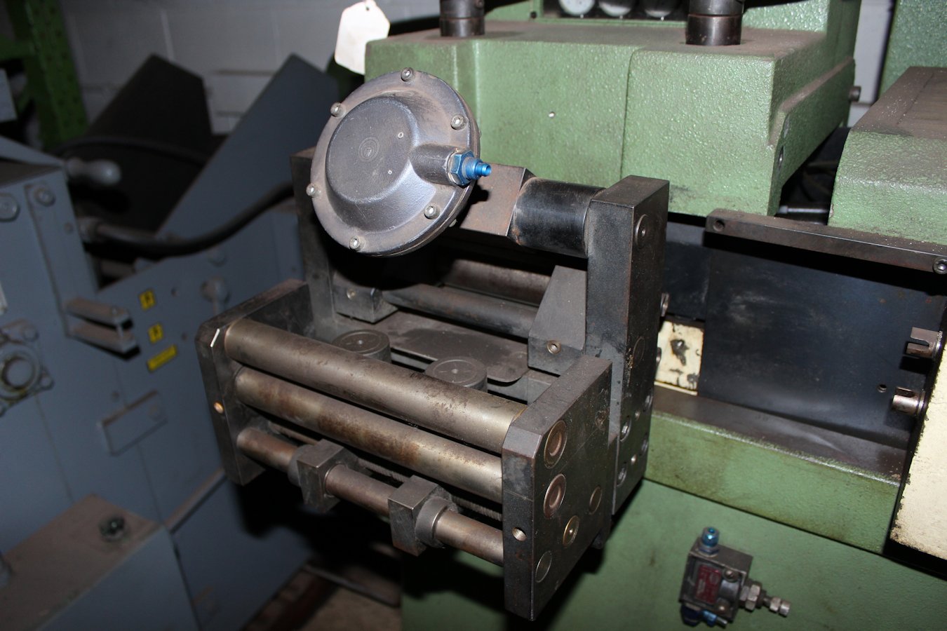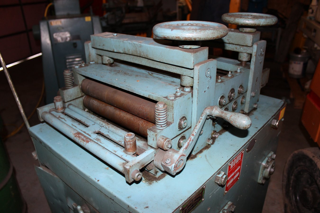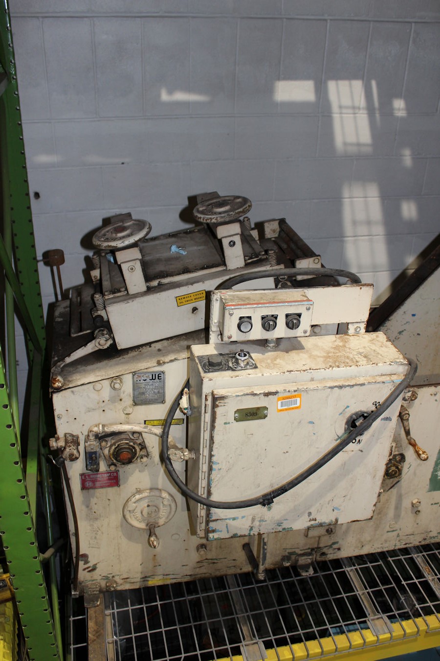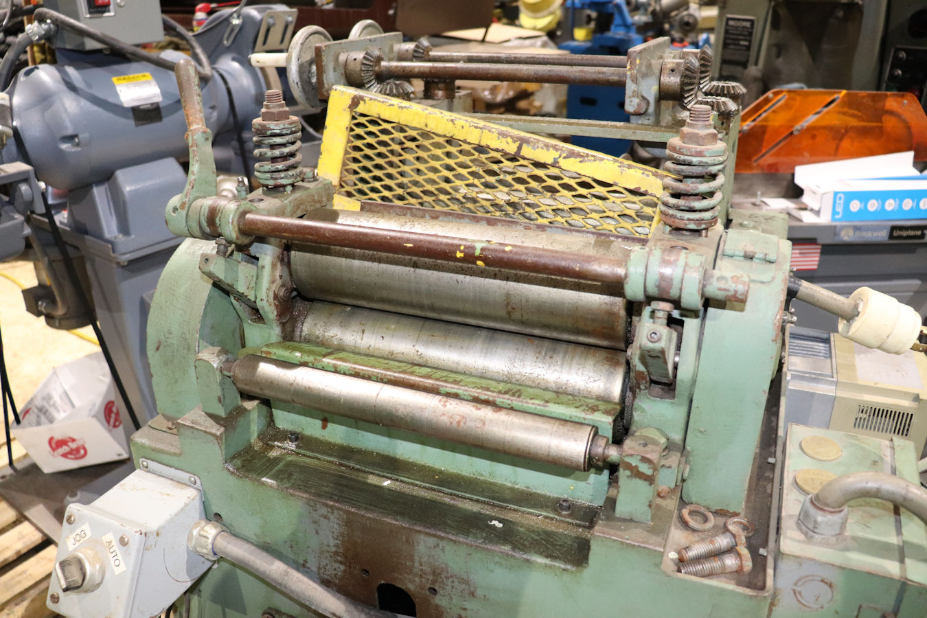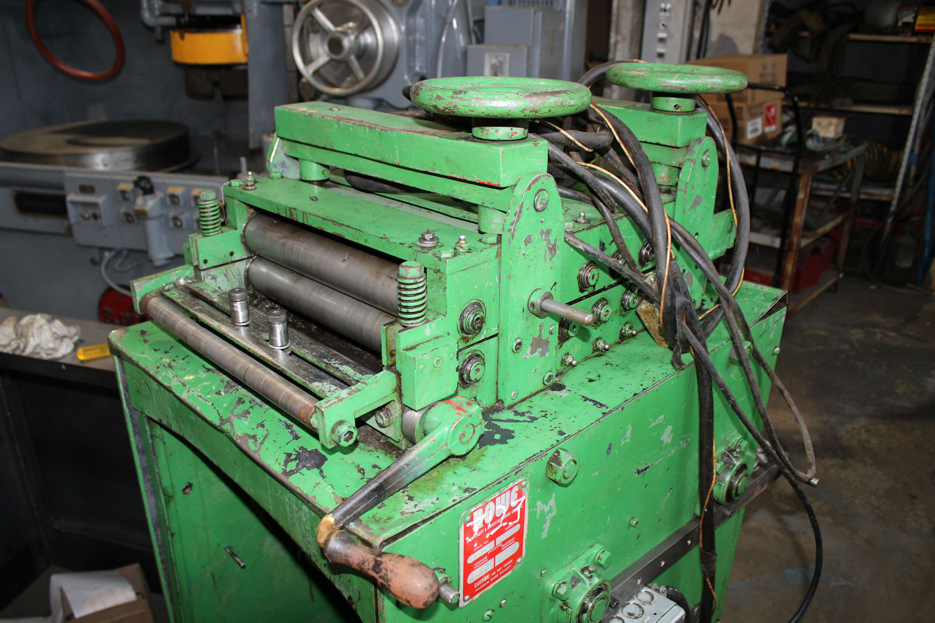 8" x 3.5" Diameter rolls, Approx. 1/8" capacity, Hydraulic powered variable speed