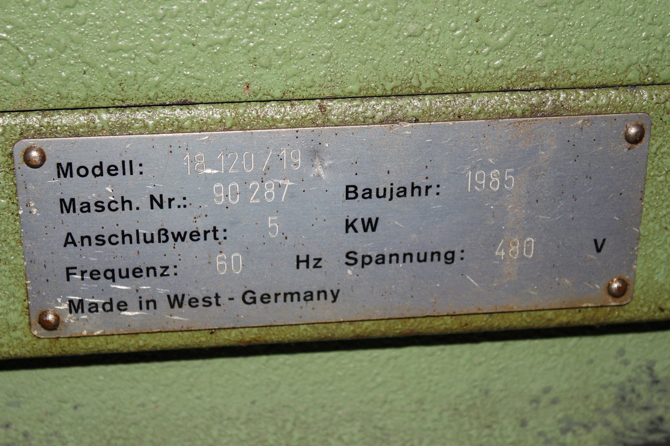 Model 18.120/19, S# 90287, Date Mfg. 1985, Max width 5", Controls: Manual - Automatic -