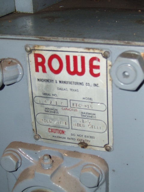 Model FTCB-15, S# 1421, 15" x .125" Mild steel capacity