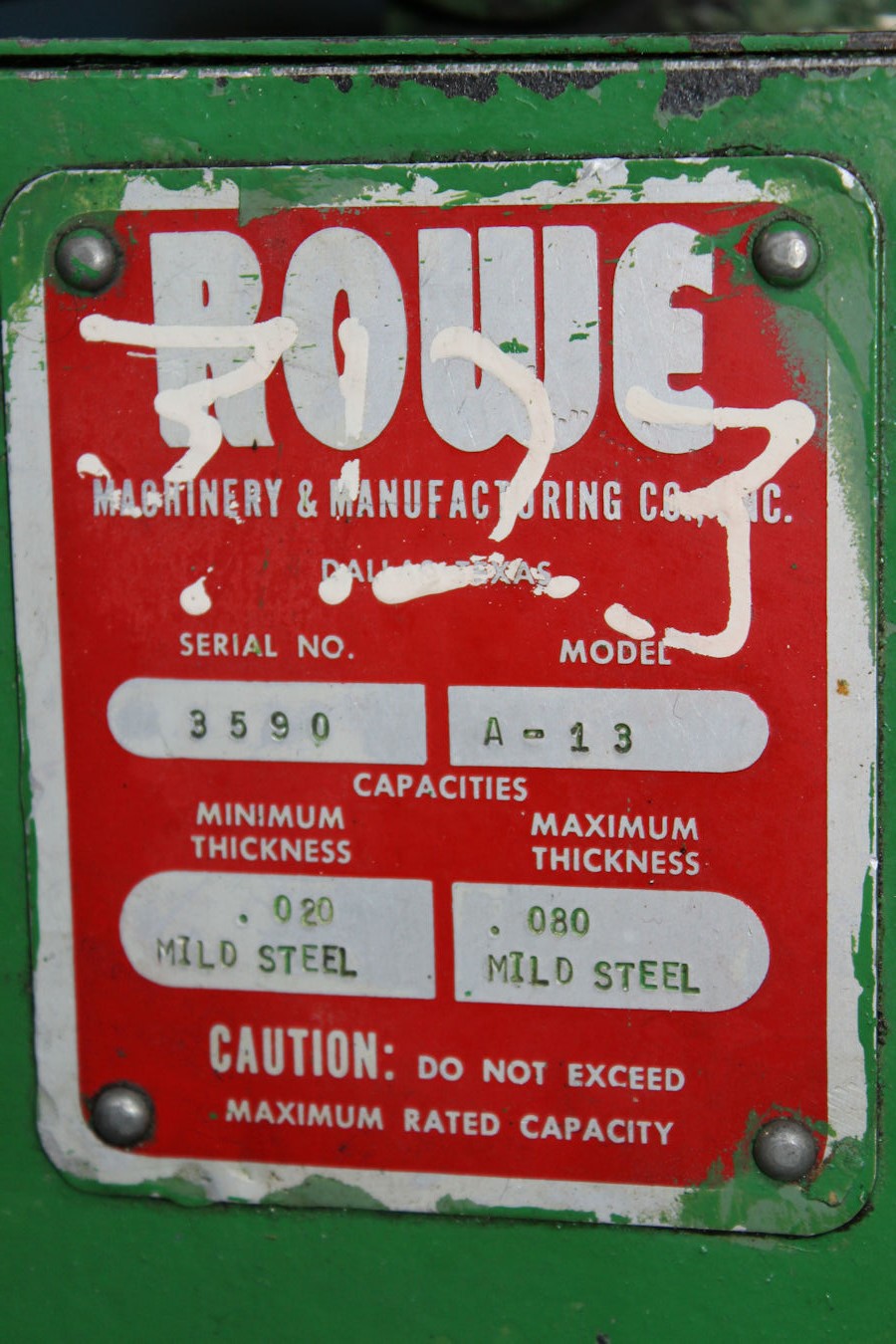 Model A-13, S# 3590, 13" x .080", Min. Thickness .020" mild steel, Max. Thickness