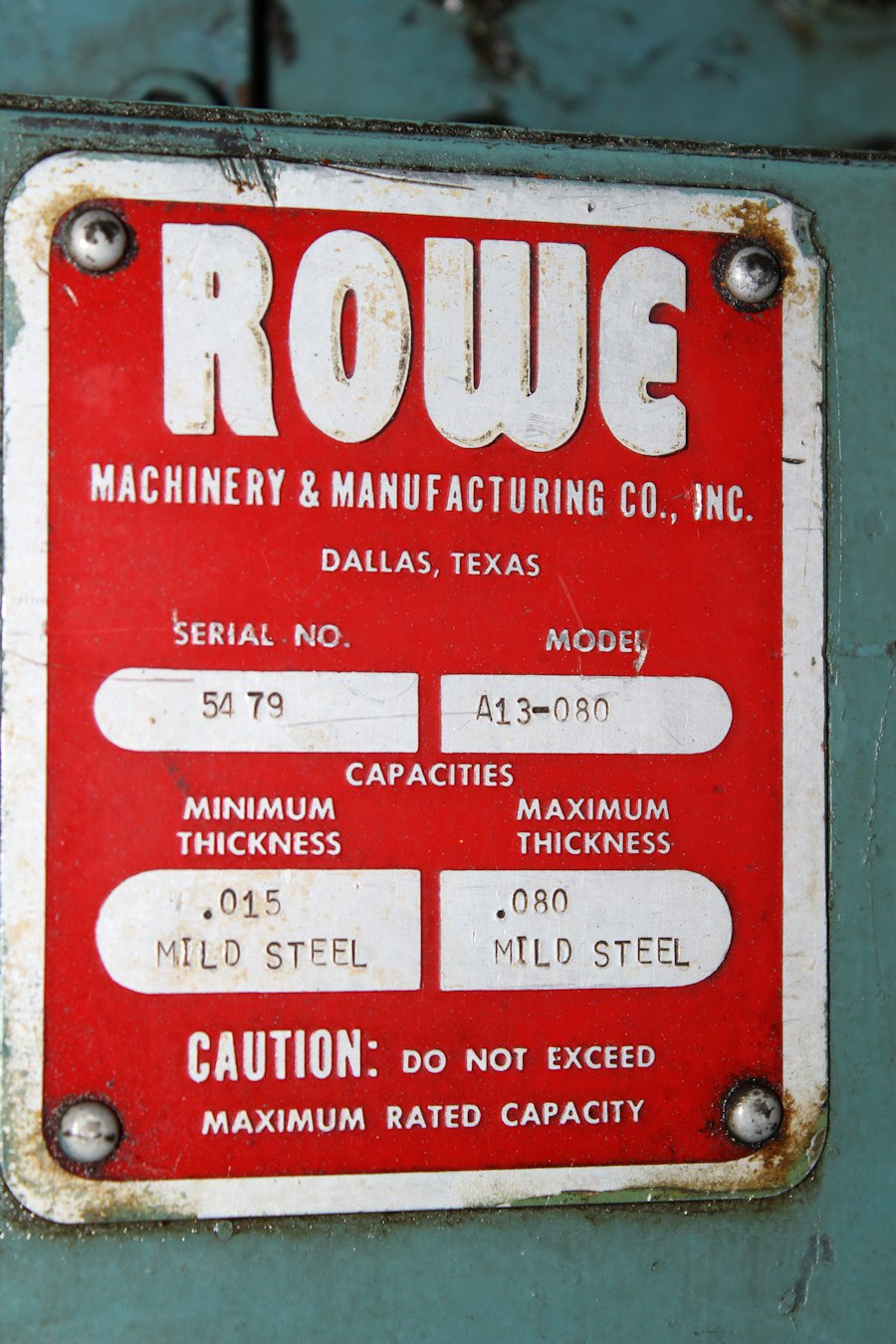 Model A13-080, S# 5479, 13" x .080", Min. Thickness .015" mild steel, Max. Thickness
