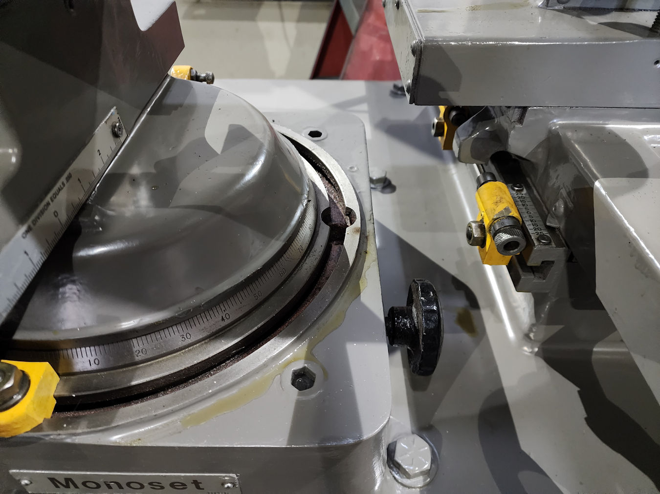 5" Wheels, #2 Morse taper tool holder, Oscillating head, 7.5" x 4" T-Slotted tilting