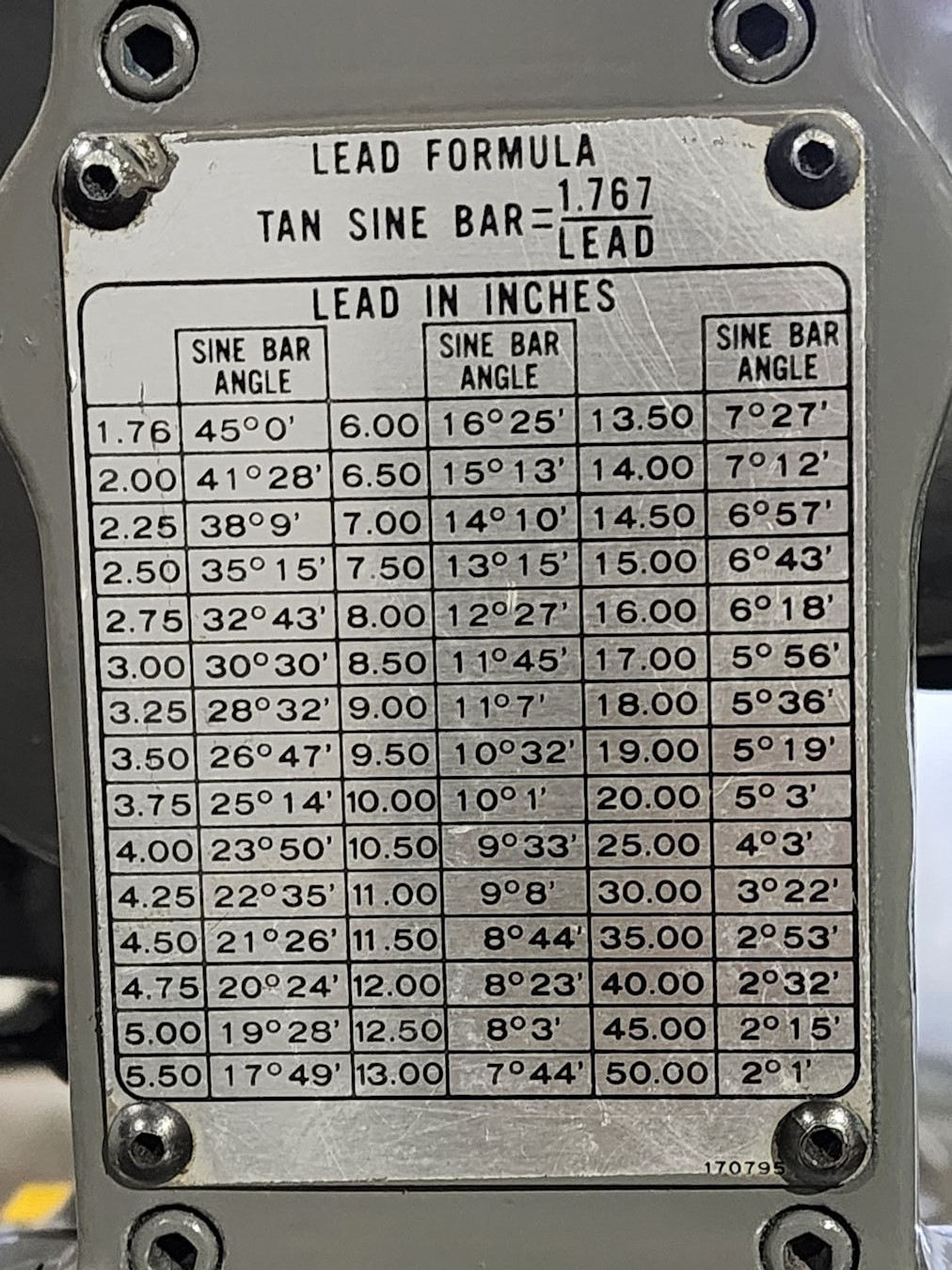 Universal bit holder, 1/2hp 1,750 rpm 220v 3ph, Coolant 1/4hp Brown & Sharp pump