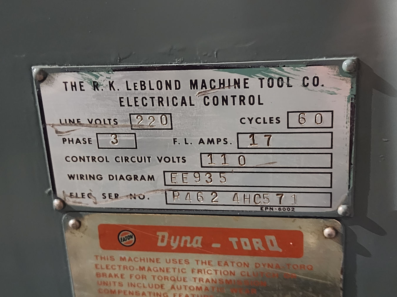 length chip catch pan, Fwd./Rev, 3/4hp 220/440v 3ph, Cleaned &
