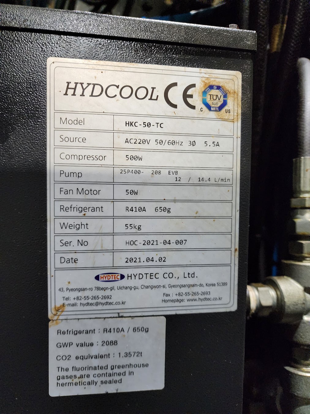 Chip conveyor & coolant tank system, 3hp 230/460v 3ph Hydraulic pump, Machine 240/480v (wired 480v) 3ph,