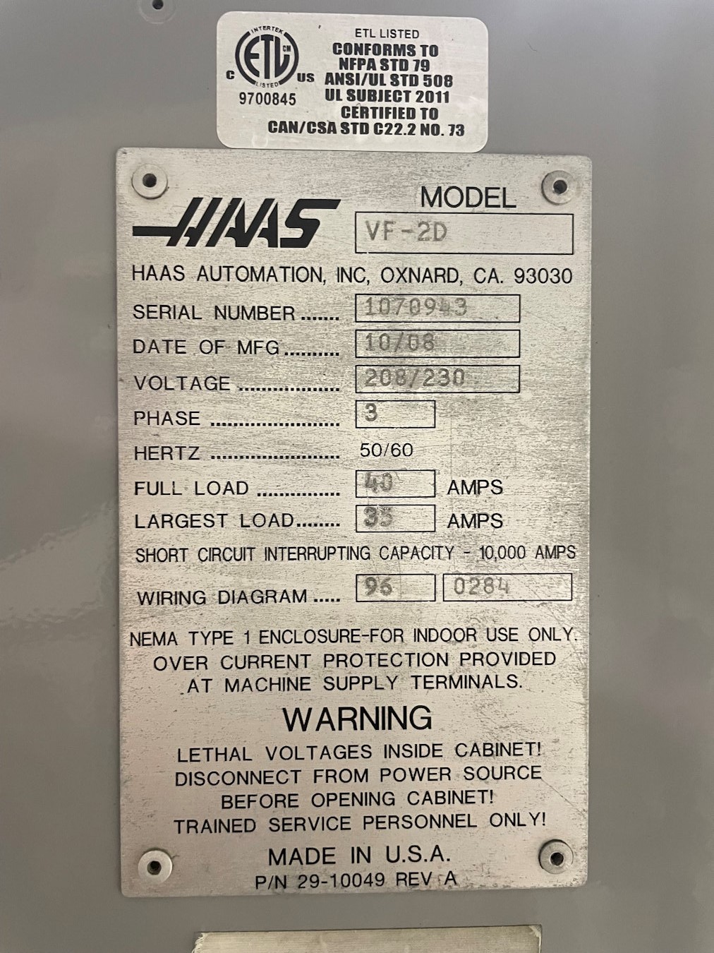 Max spindle speed 8,000 rpm, 15hp 360/480v 3ph,