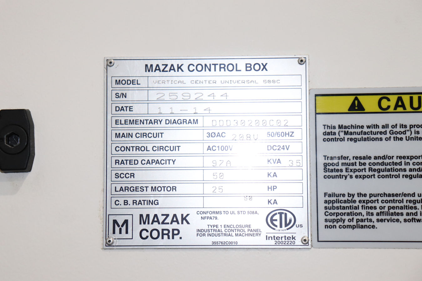 Model VCU-500C, S# 259244, Date Mfg. 11/2014, Max spindle speed