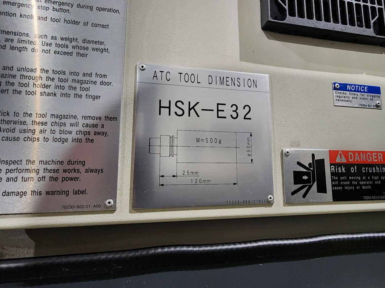 12,000 rpm, 20" x 40" Table, Max workpiece 35.43" x 19.68" x