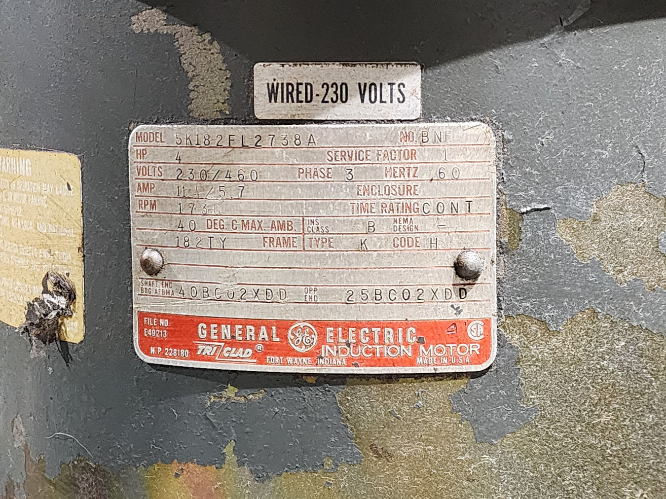 Horizontal drive motor 5hp 220v 3ph, Overall Dim. 5' 3"FB x 5' 7"W x 7' 9"H