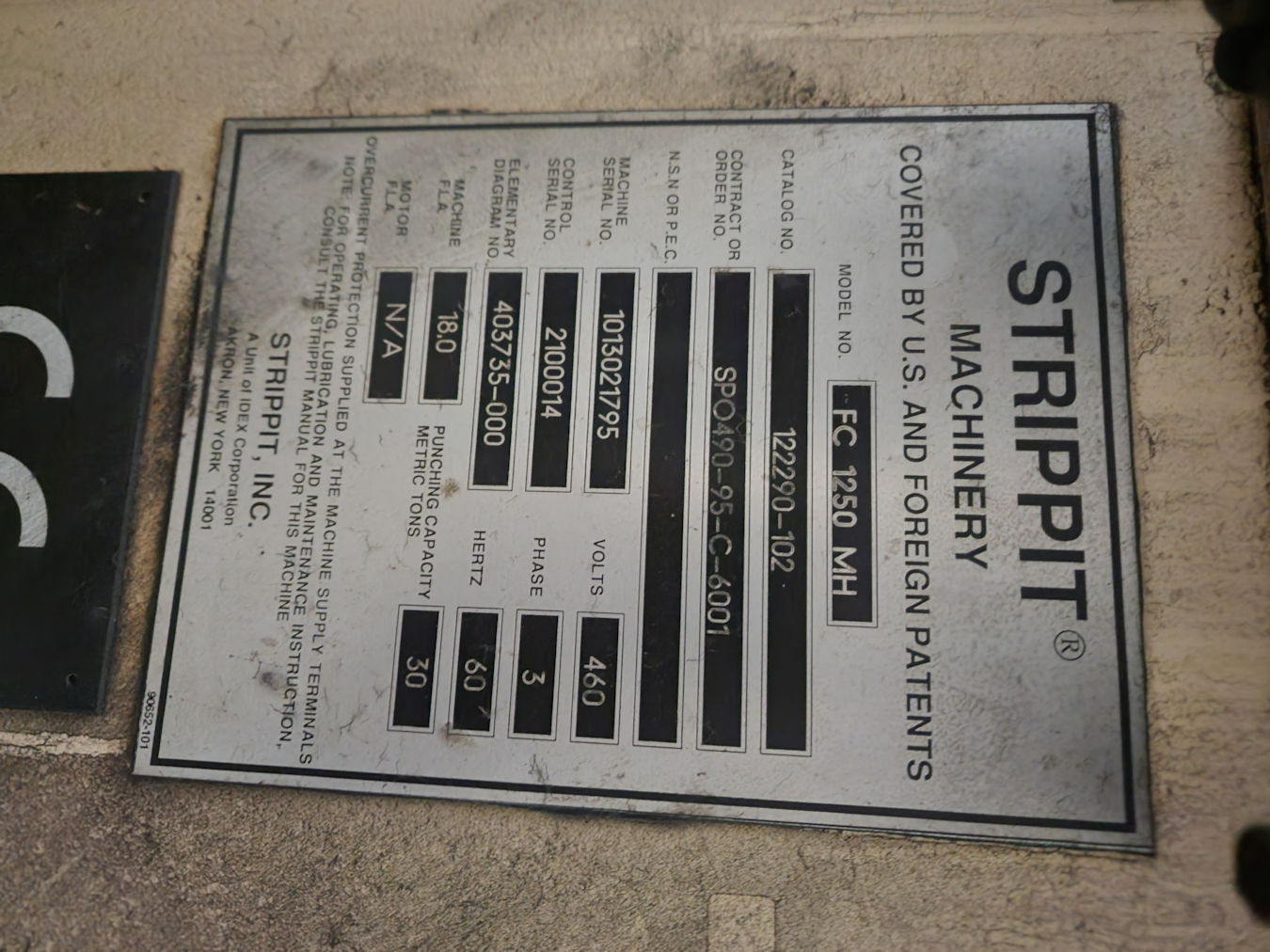 Model FC 1250 MH, Catalog No. 122290-102, Machine S# 1013021795,