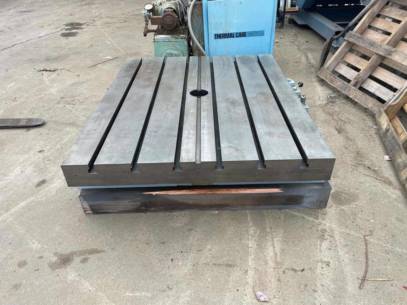 Table top is T slotted, 1.75" Thick and is Blanchard ground, Is made to be motorized