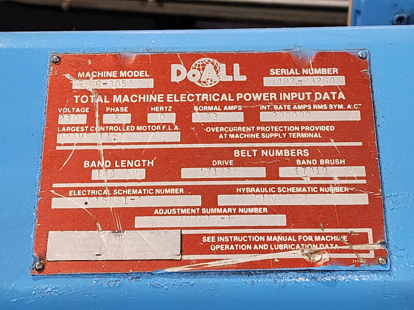 126" Blade, Blade speeds from 125 to 300 fpm, Manual/auto operation,