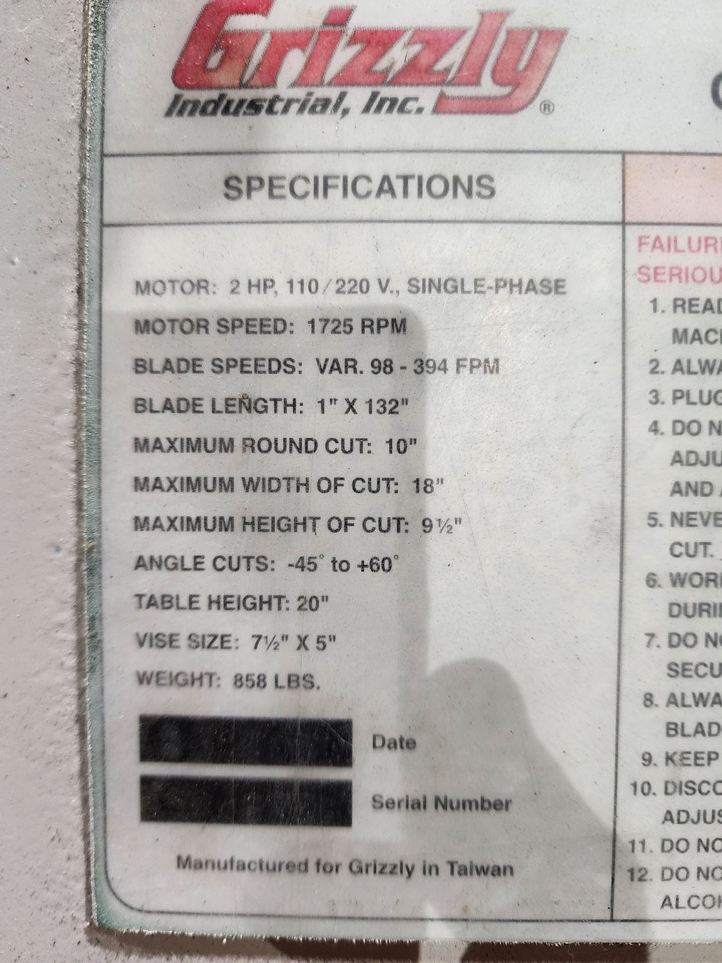 S# 1605, 18.5" Throat, 16.5" Capacity, 2" x 24" Blade, 3hp 440v 3ph (PHOTO1)(PHOTO2)(PHOTO3) $1,200