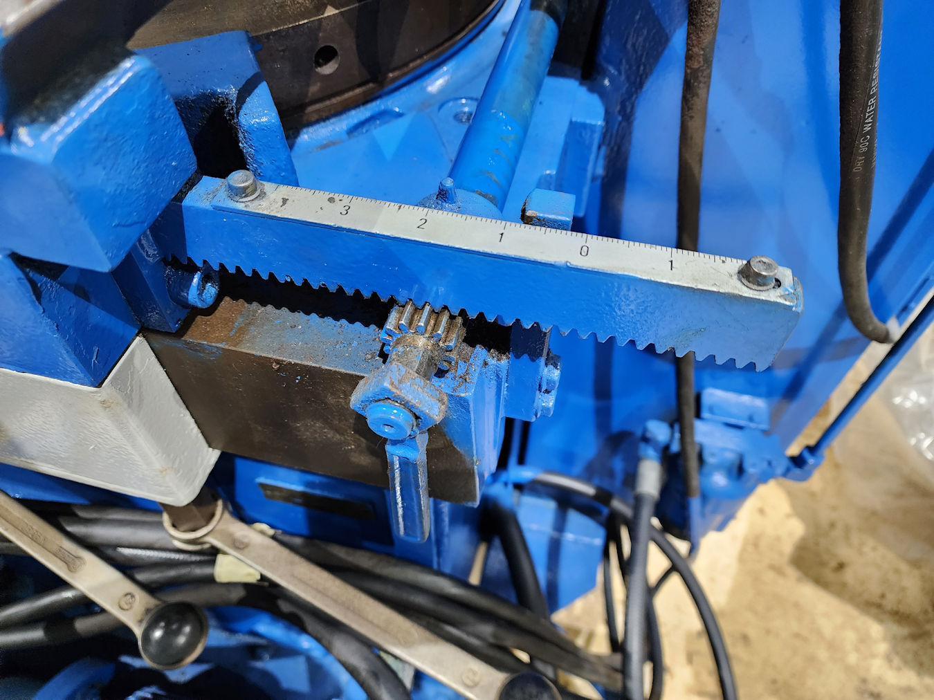 6" in/out travel, Air operated valve for vise control, Manual operated in-feed roller system, Chain operated