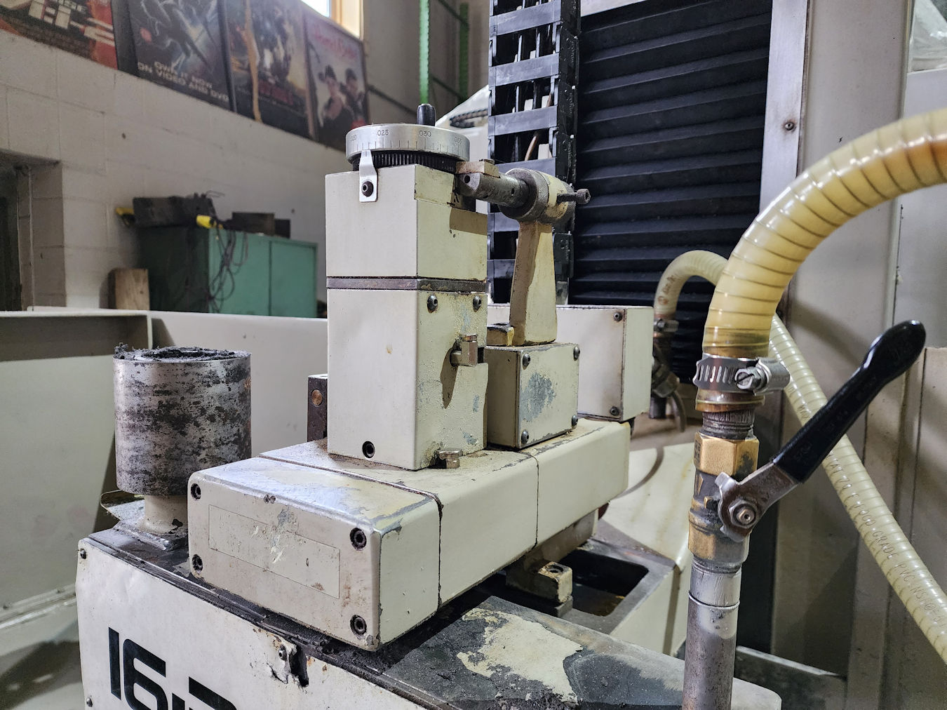 16" Segmented wheel with truing head, 7.5hp 880 rpm 220/440 3ph Grinding head motor, Hydraulic table, Overall