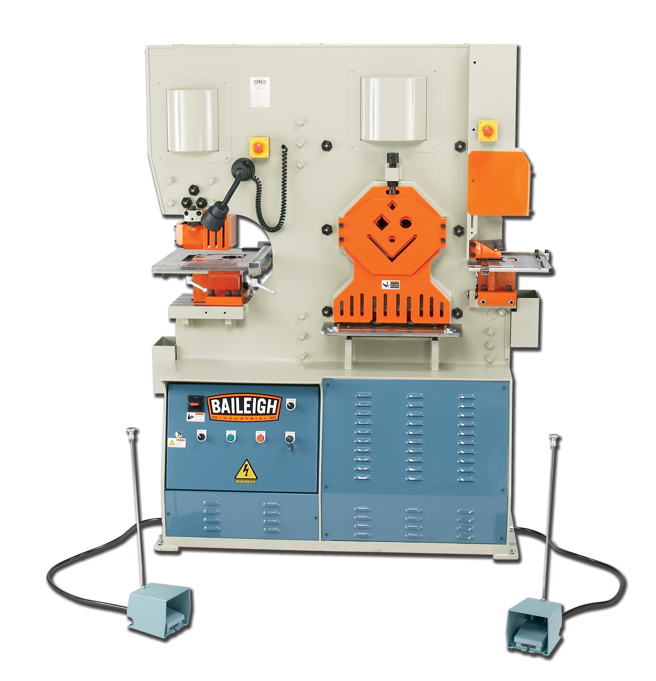 Foot pedal control, Oversized work tables, Includes 3/4" punch and die, 220v 3ph, Shipping Dim. 49"L x