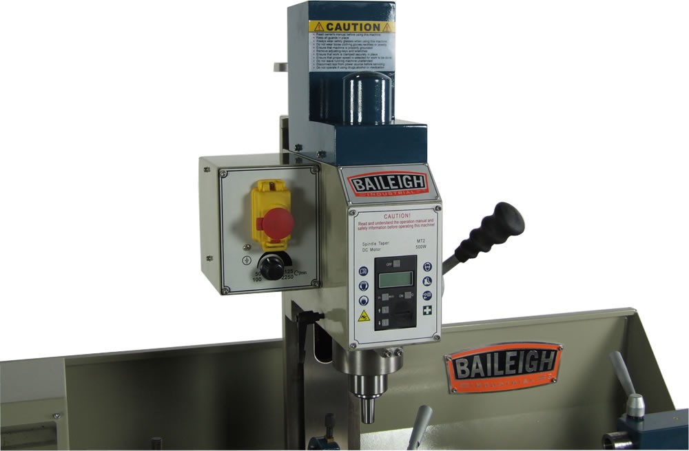 Variable spindle speeds from 50 to 2,000 rpm, Thru hole 1.1", MT 2 Spindle taper, R8 Spindle on mill, Max distance