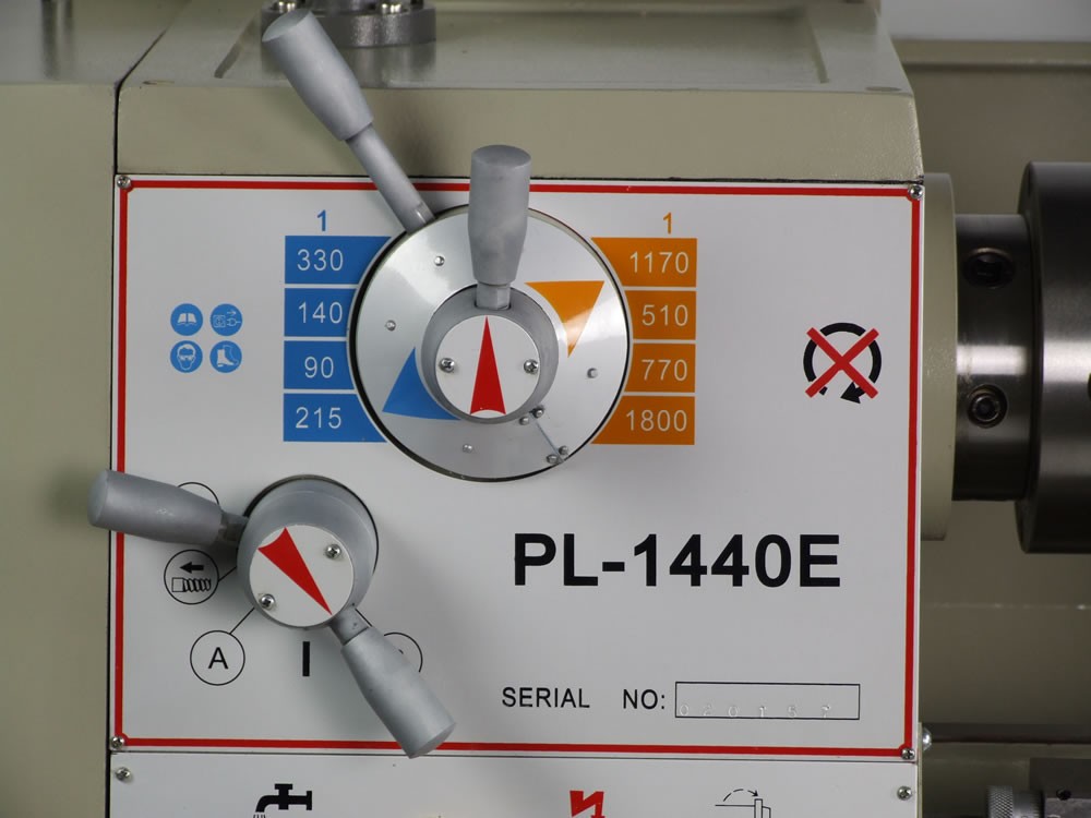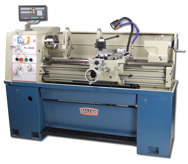 Model PL-1440E, 14" Swing, 19.9" Swing in gap, 8.6" Swing over cross slide, 40" Between centers,