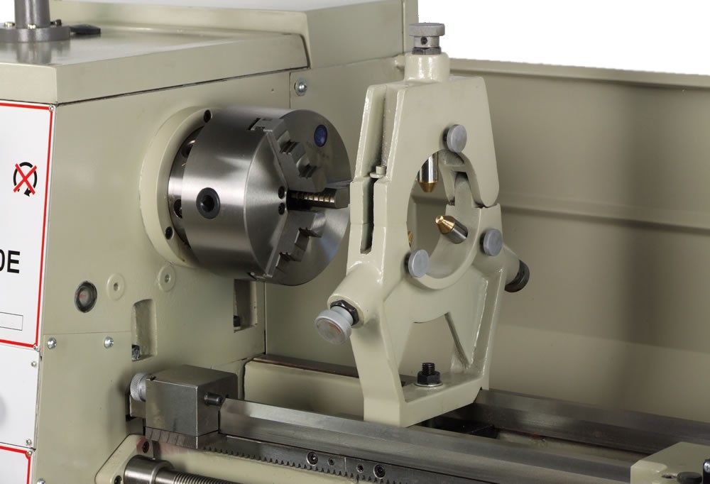 Chuck safety shield, Work light, Tooling included: 6" 3 Jaw universal chuck, Steady rest, Follow rest, 4 Way tool