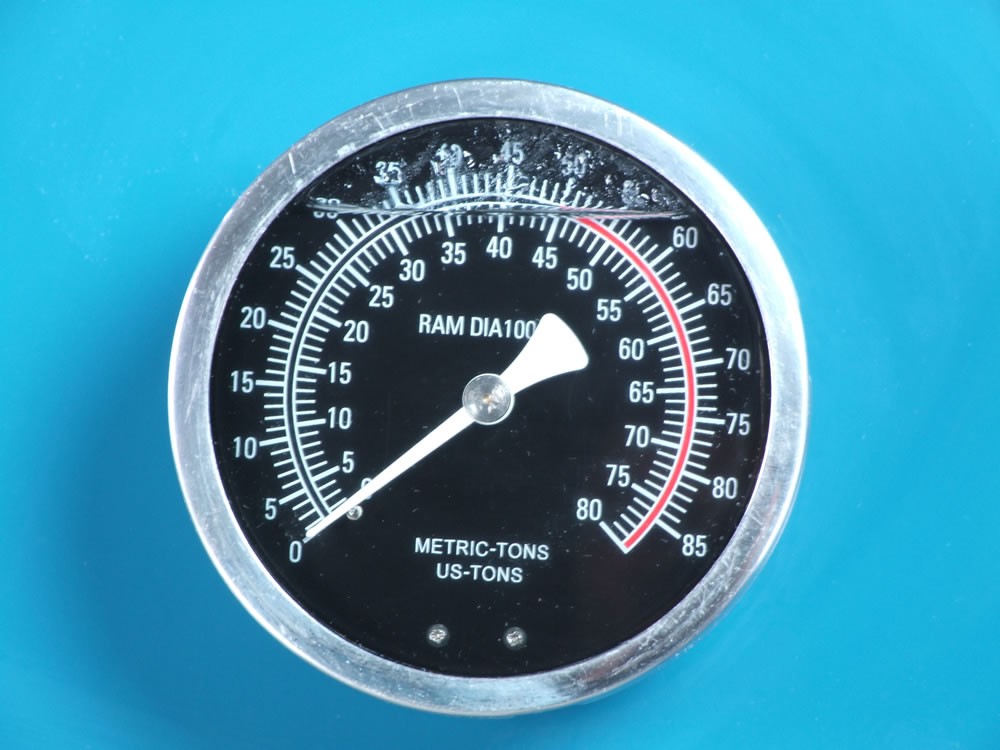 Max pressure 3,408 psi, Pump speed .871/3.619 gal/min, Working speed .086"/sec, Lowering speed .362"/sec, Oil