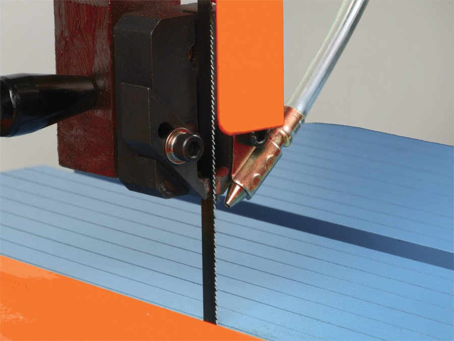 Model BS-350M, Blade size 1" x .035" x 124.5", Variable blade speeds from 66 to 280 fpm, Miter adjustment