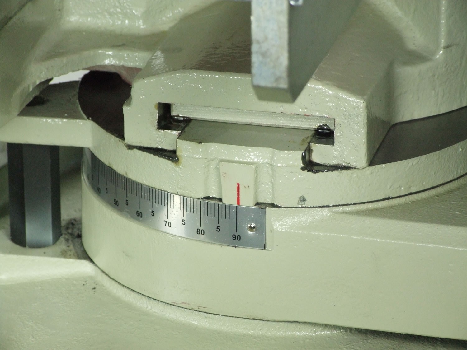 swivel head & vise 0° to 45° angle, Capacity: Round @ 90° 13" @ 45° 8.86", Square @ 90°