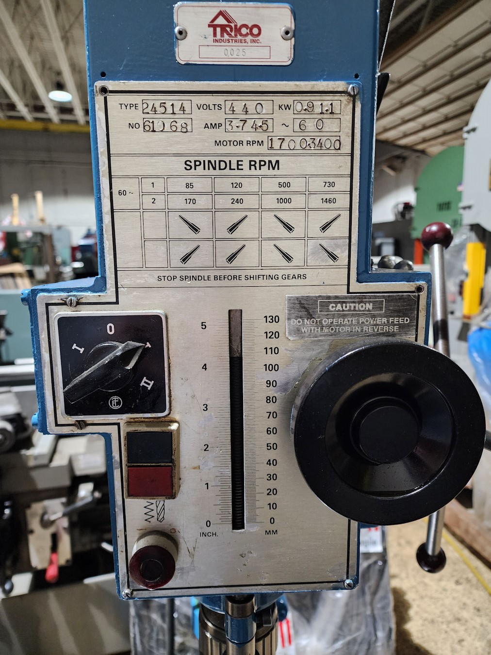 Jacobs drill chuck, 8" Throat depth, 1/2hp 208-220/440v 3ph, Auto